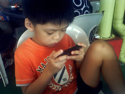 and this is him. he fell asleep while watching tv. my bro and i turned on all the lights just to take this pic. LOL! lousy phone bo bian.